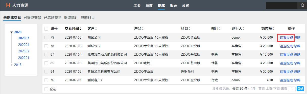 系统会自动进行过滤,只显示需要設置提成的收入信息。