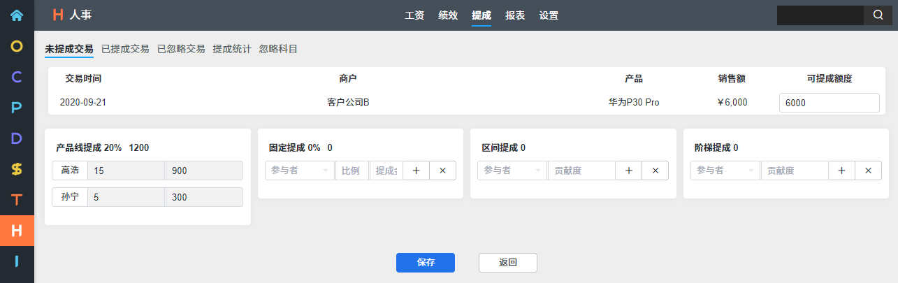 - 首先需要設置提成额度,提成金额的计算均以提成额度作为基础。