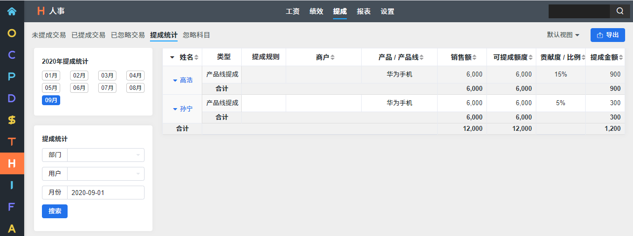 - 固定提成计算规则为:提成金额=SUM(提成额度×比例);阶梯提成计算规则为:銷售额=SUM(提成额度×贡献度),銷售额对照阶梯规则计算提成金额。