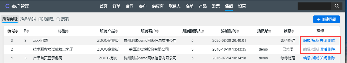 問題提交後,在售後--指派給我中可以看到指派給我的問題,所有問題中則顯示已提交的所有問題。