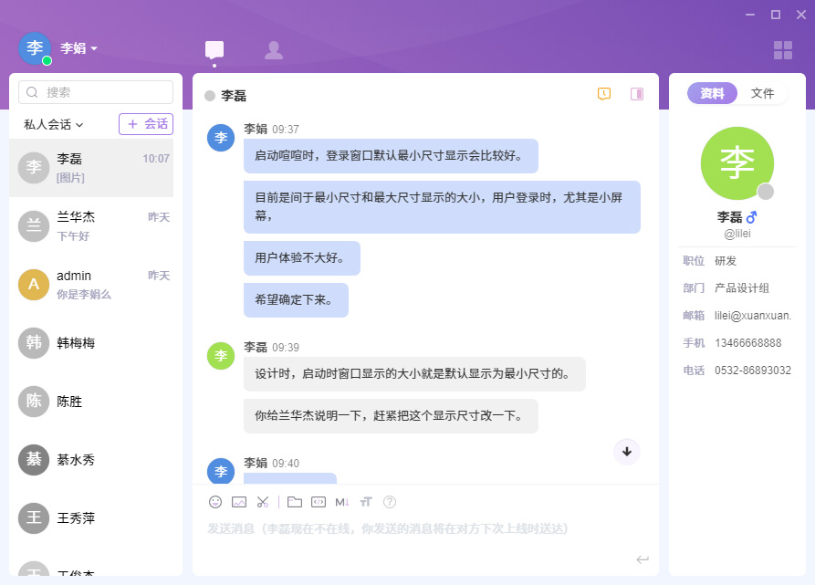 移動端掌上協同聊天,支持離線消息推送功能,重要消息不再錯過。