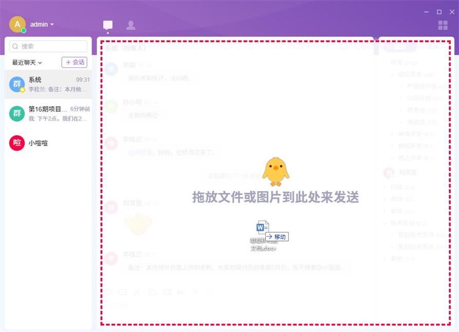 喧喧發送文件或圖片,支持拖放文件到當前聊天窗口進行發送: